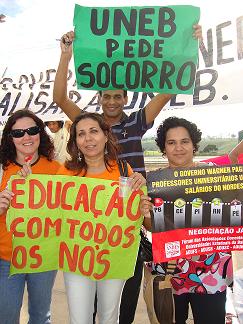 Na última sexta-feira, 11 de junho, os docentes, junto aos estudantes, realizaram um ato público, em santo Antônio de Jesus, durante a inauguração de um Centro Tecnológico com a presença do governador. A comitiva de Wagner não esperava a presença dos manifestantes que com cartazes, faixas e palavras de ordem denunciaram a política de descaso do atual governo para Educação Superior. Durante a passagem do governador pelos manifestantes, os docentes questionaram Wagner sobre a falta de professores nas universidades estaduais, a promessa de revogação da 7176/97 feita no início de seu mandato e ainda não cumprida e a abertura de negociação com o movimento docente.